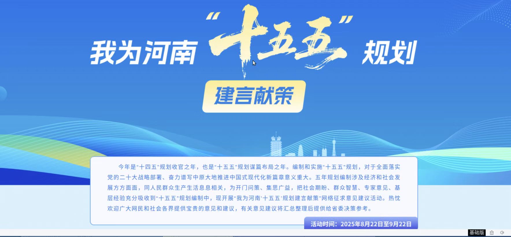 關(guān)于開展“我為河南‘十五五’規(guī)劃建言獻策”網(wǎng)絡征求意見建議活動的公告